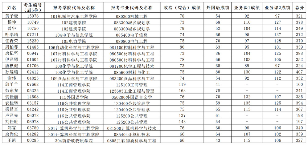 根据上述原则,下列考生列入复试名单:
